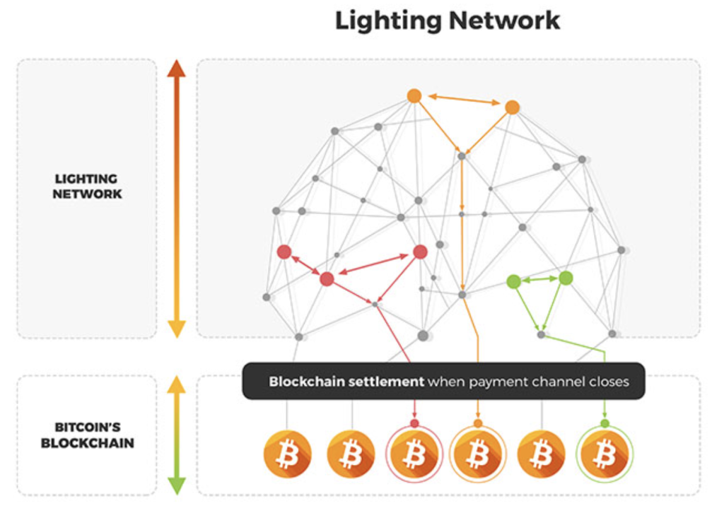 Het Lightning netwerk is ontworpen als de betalingsstructuur boven op het Bitcoin netwerk.