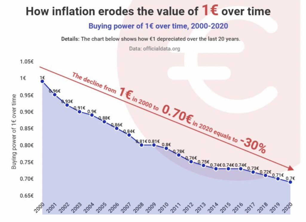 Hoe meer Euro’s er in circulatie komen, hoe minder ze waard worden.