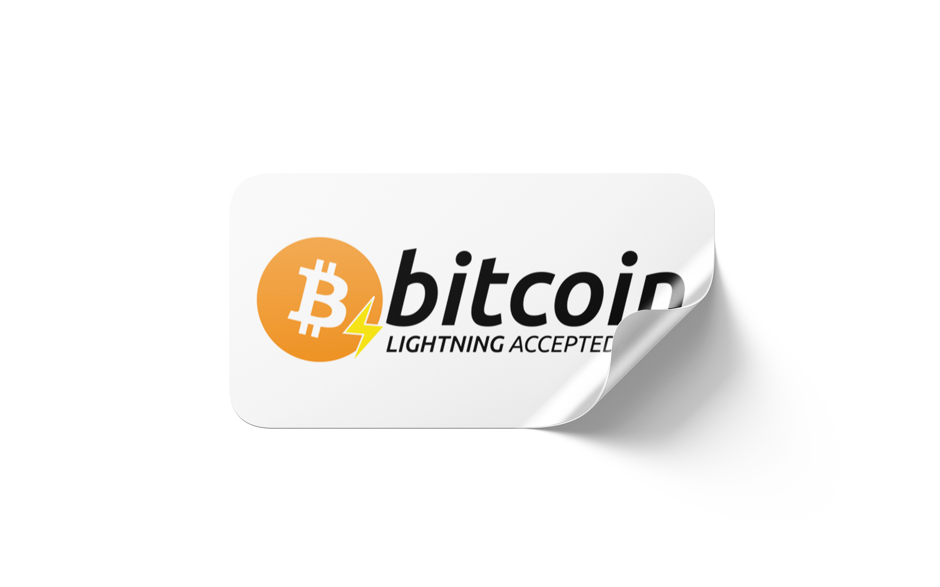 De “Bitcoin Lightning Accepted Here” sticker is een absolute must-have voor iedere winkel of individuele ondernemer die bitcoin betalingen accepteert.